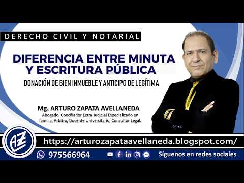 🔴 El Mg. Arturo Zapata Avellaneda desarrolla la DIFERENCIA ENTRE MINUTA Y ESCRITURA PÚBLICA desarrollando sus conceptos e indicando sus partes estructurales. Luego, a manera de ejemplo, revisa algunos actos jurídicos realizados en la formalidad de Escritura Pública como la donación de bienes inmuebles y el anticipo de legítima desde la perspectiva del Decreto Legislativo Nº 1049 (Ley del Notariado) y el Código Civil peruano.